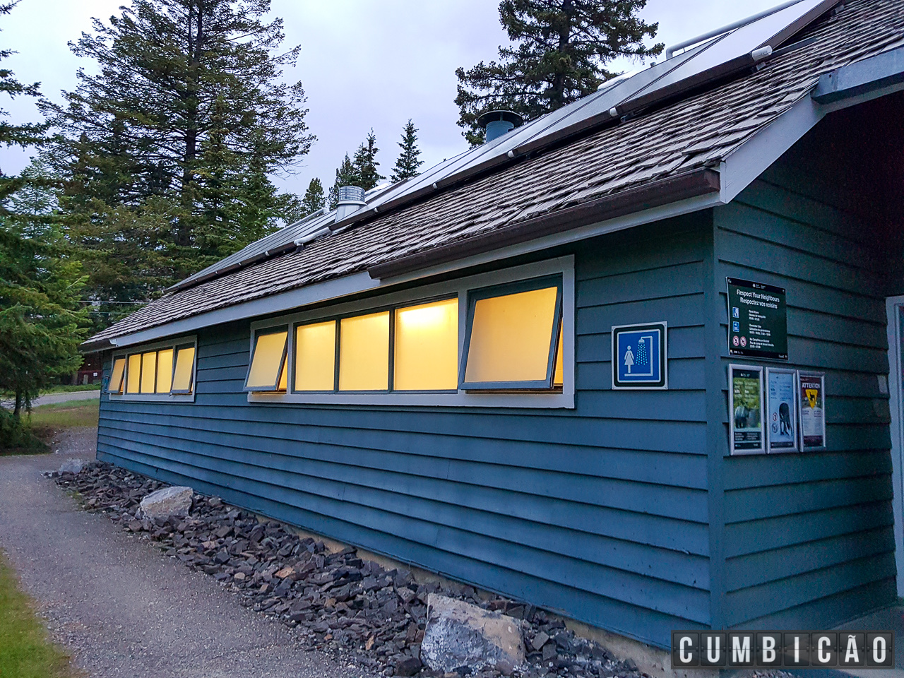 Aliás aqui uma observação. Se eu já havia achado os banheiros dos outros campings oficiais dos parques nacionais do Canadá excelentes, este era simplesmente fora de série.