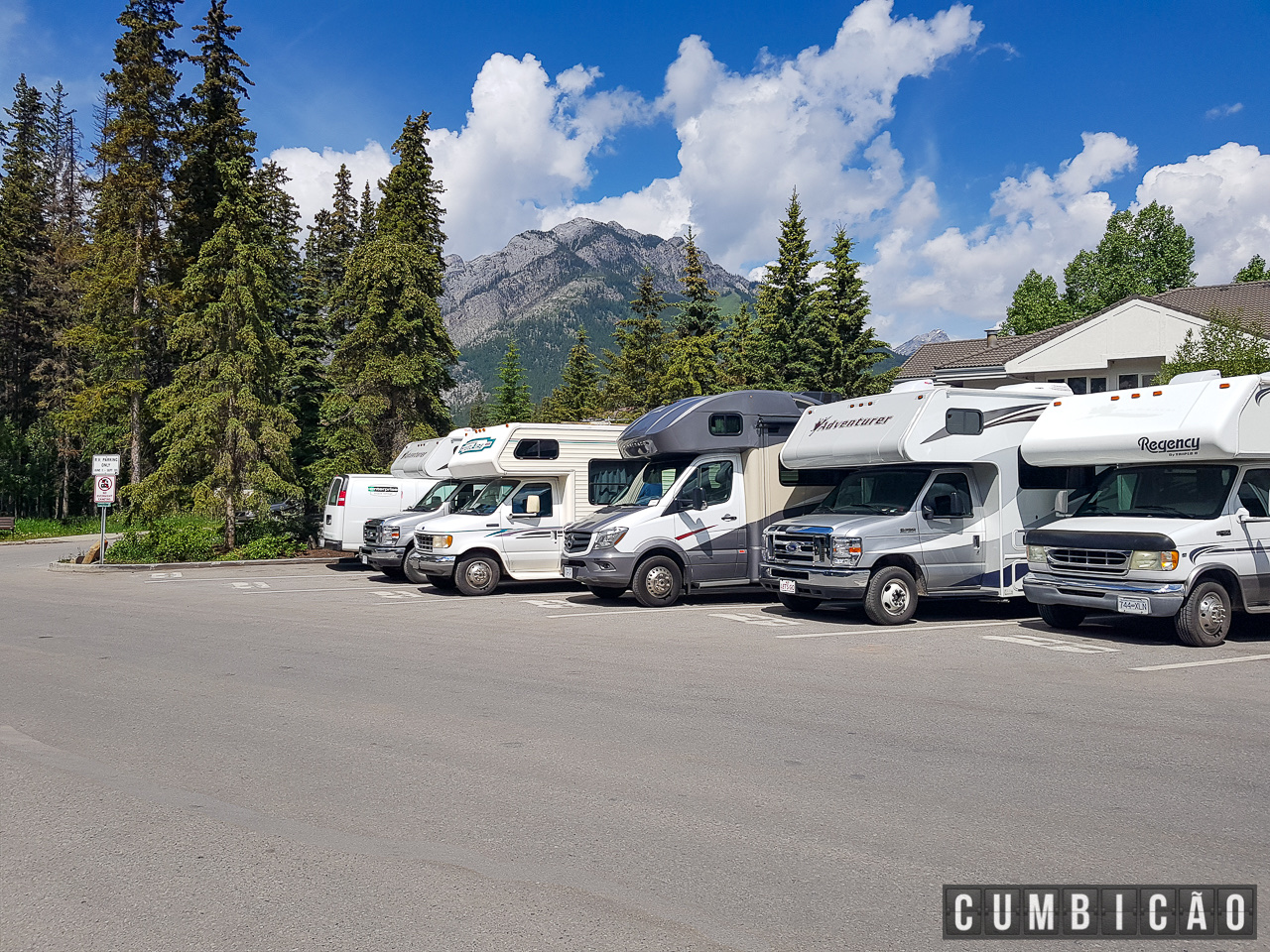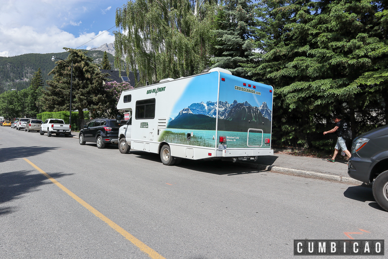 Dá para estacionar o motor-home em Banff? No centro da cidade mesmo, as vagas para este tipo de veículo são poucas e ainda tem o complicador de que o tempo máximo dos parquímetros ser de 3 horas, o que pode ser insuficiente dependendo do tempo que você vai gastar passeando lá.