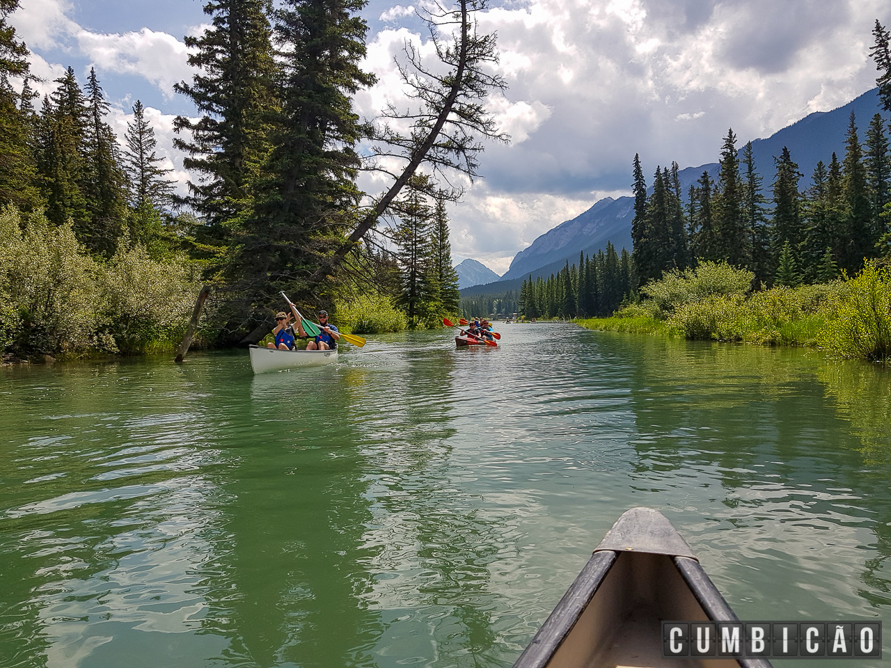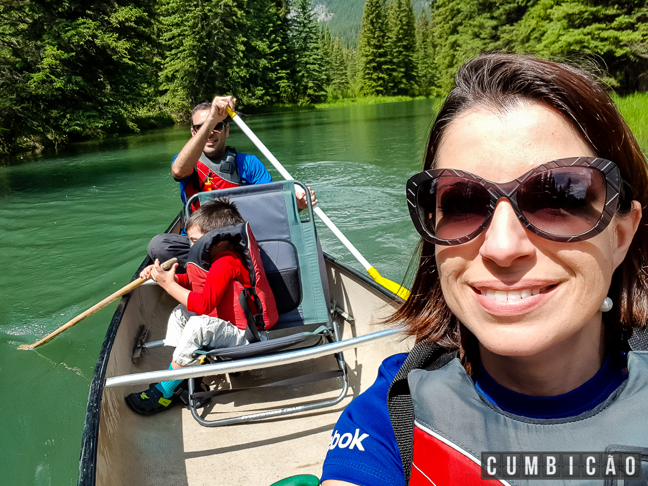 Um passeio que não estava inicialmente no nosso roteiro, mas que adicionamos por sugestão do nosso parceiro local, o Board de Turismo de Banff, foi o passeio de canoa pelo Rio Bow.