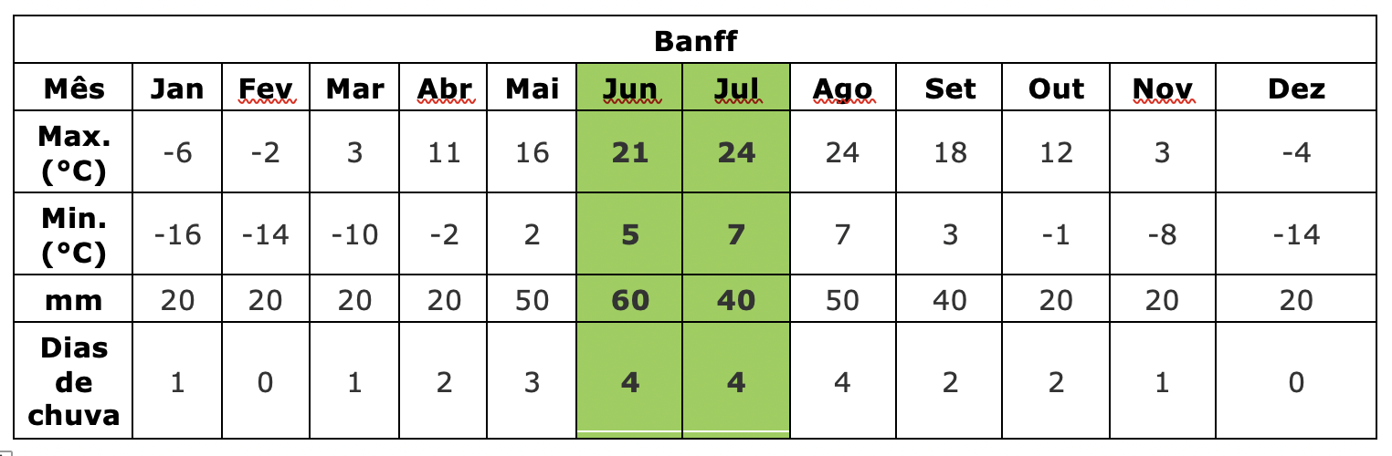 Só não se empolgue muito com o “verão” canadense. Para eles é super quente, já para nós… E mesmo assim ainda tem a questão da localidade. Nas cidades por exemplo eu conseguir andar de camiseta e bermuda fácil. Já nas rochosas… Quase morremos de frio durante as noites.