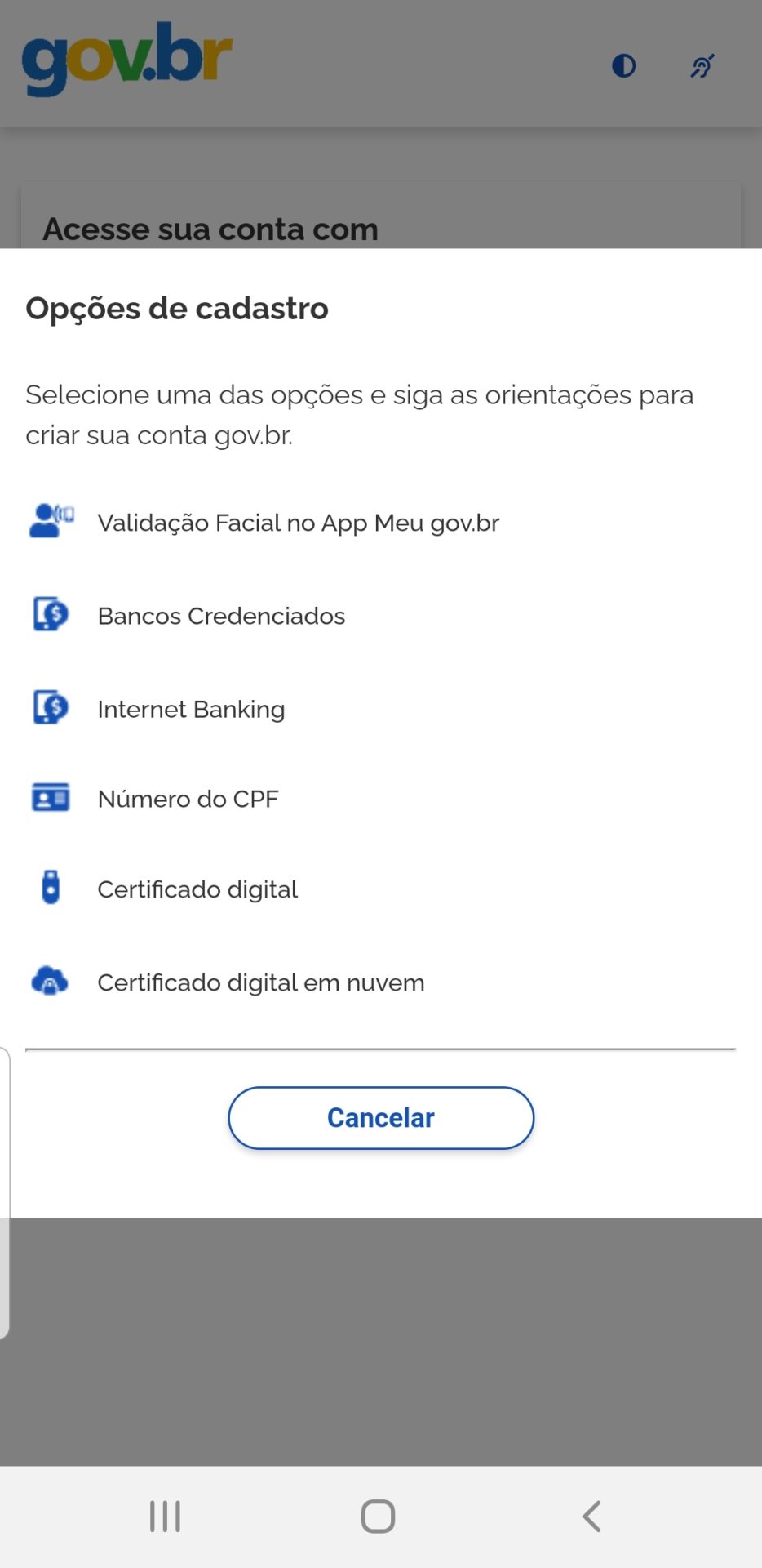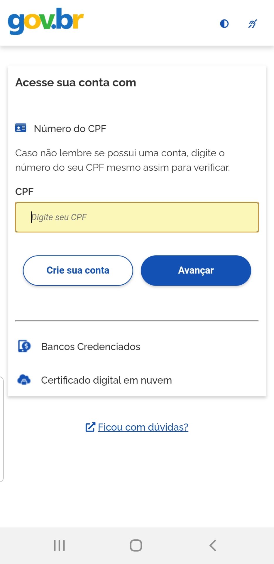 Mas como acessar o sistema? Vou aqui compartilhar um passo a passo pelo app, mas se você fizer pelo site, as telas e passos são os mesmos, eliminando-se apenas é claro, a necessidade de baixar o app para o seu celular.