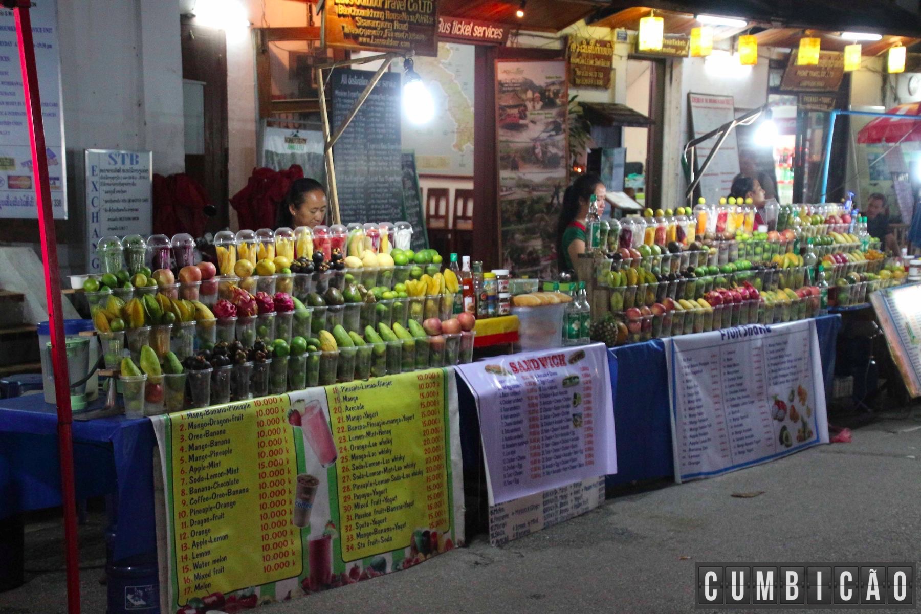 Um item que chamou bastante a atenção são os sucos e as barracas de frutas. Tem muita coisa gostosa e eles ainda fazem tudo no estilo froozen.