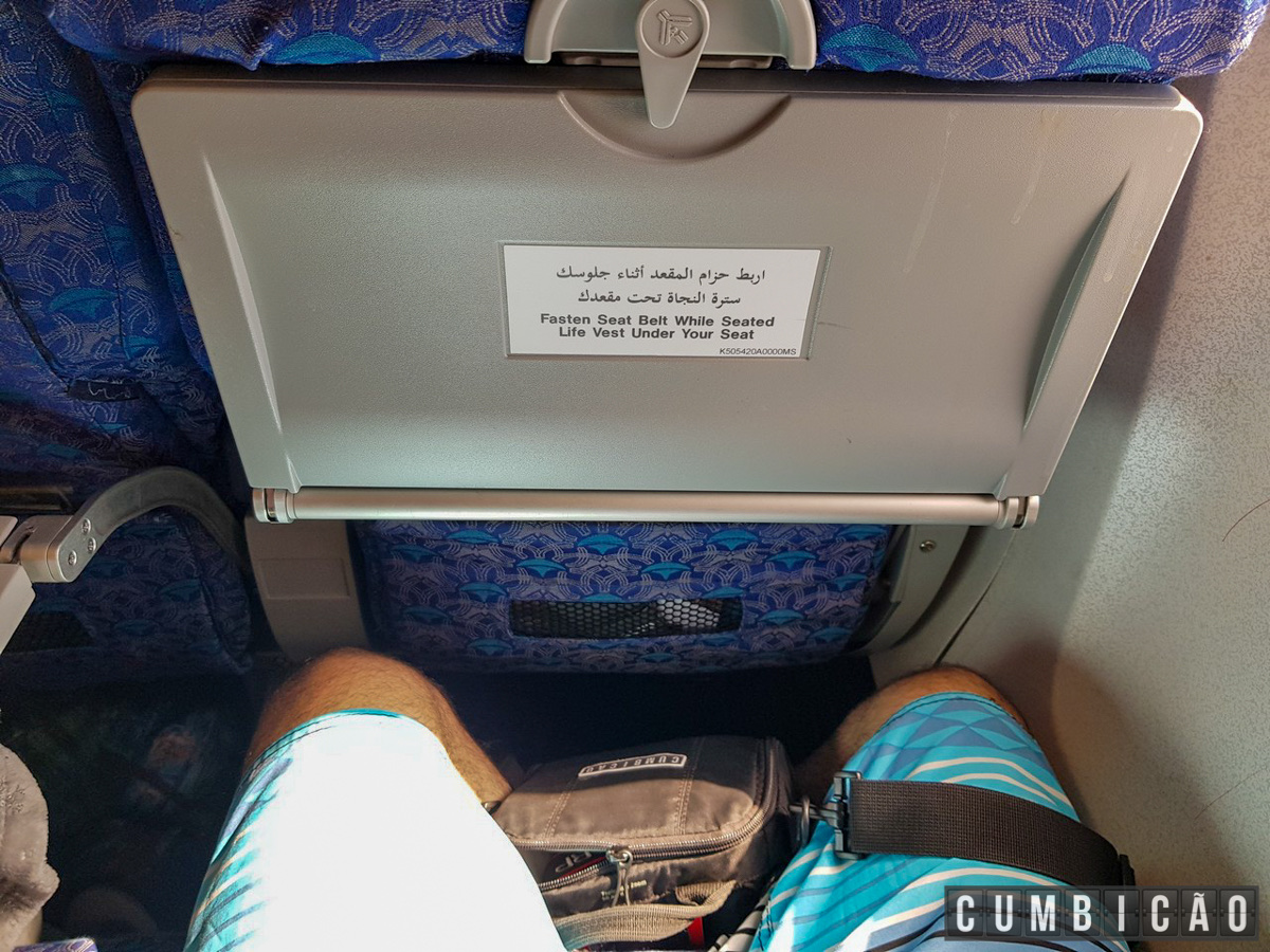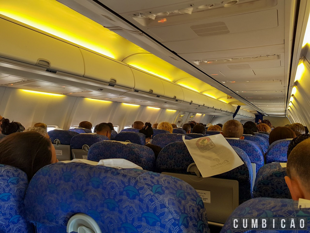 Quando vi o da Sra. Cumbicona, que era o do corredor, notei que de fato, apesar da nossa escolha no site da EgyptAir, no final colocaram ela na fileira de trás onde estavam apenas um casal de ingleses e um assento vazio.