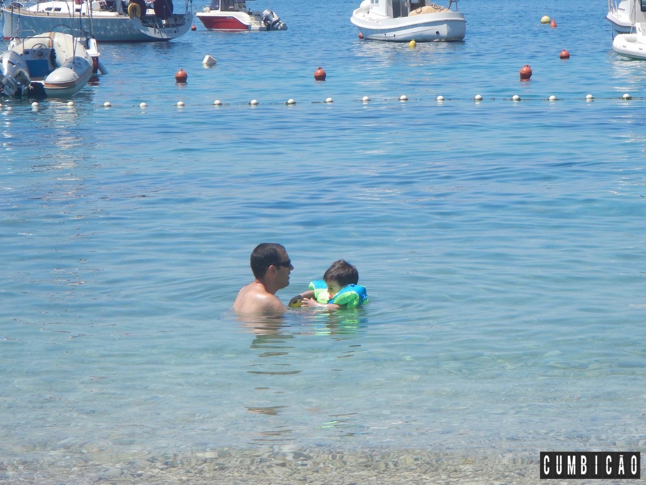 A maior parte das praias tem águas tranquilas e ideiais para que elas brinquem tranquilamente – só vale aqui um cuidado: invista em um sapato para praia para evitar problemas com os ouriços do mar e as pedrinhas.