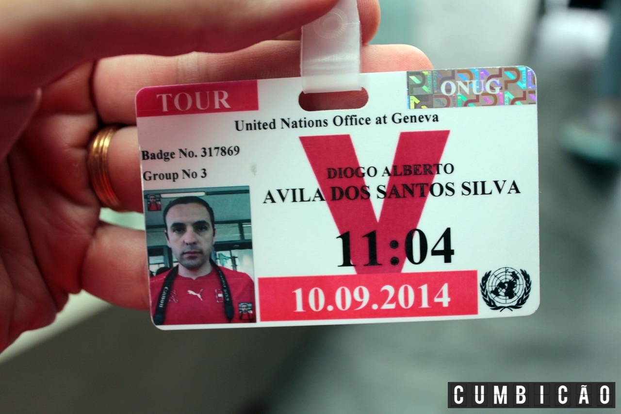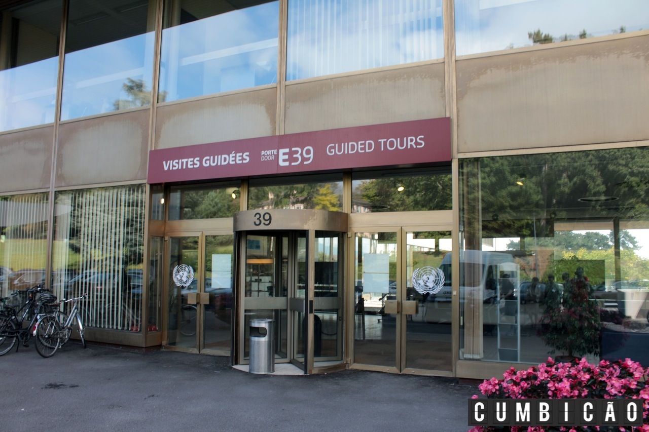 A entrada deste tour guiado para a sede da ONU em Genebra é pela Ave de la Paix 14 (Portão Pregny), onde após uma fila razoável e um sistema de segurança / revista como aqueles de aeroporto, você é cadastrado e encaminhado para uma área onde é feita a escolha do horário do tour – eles separam as pessoas em grupos de 20/25 por guia.