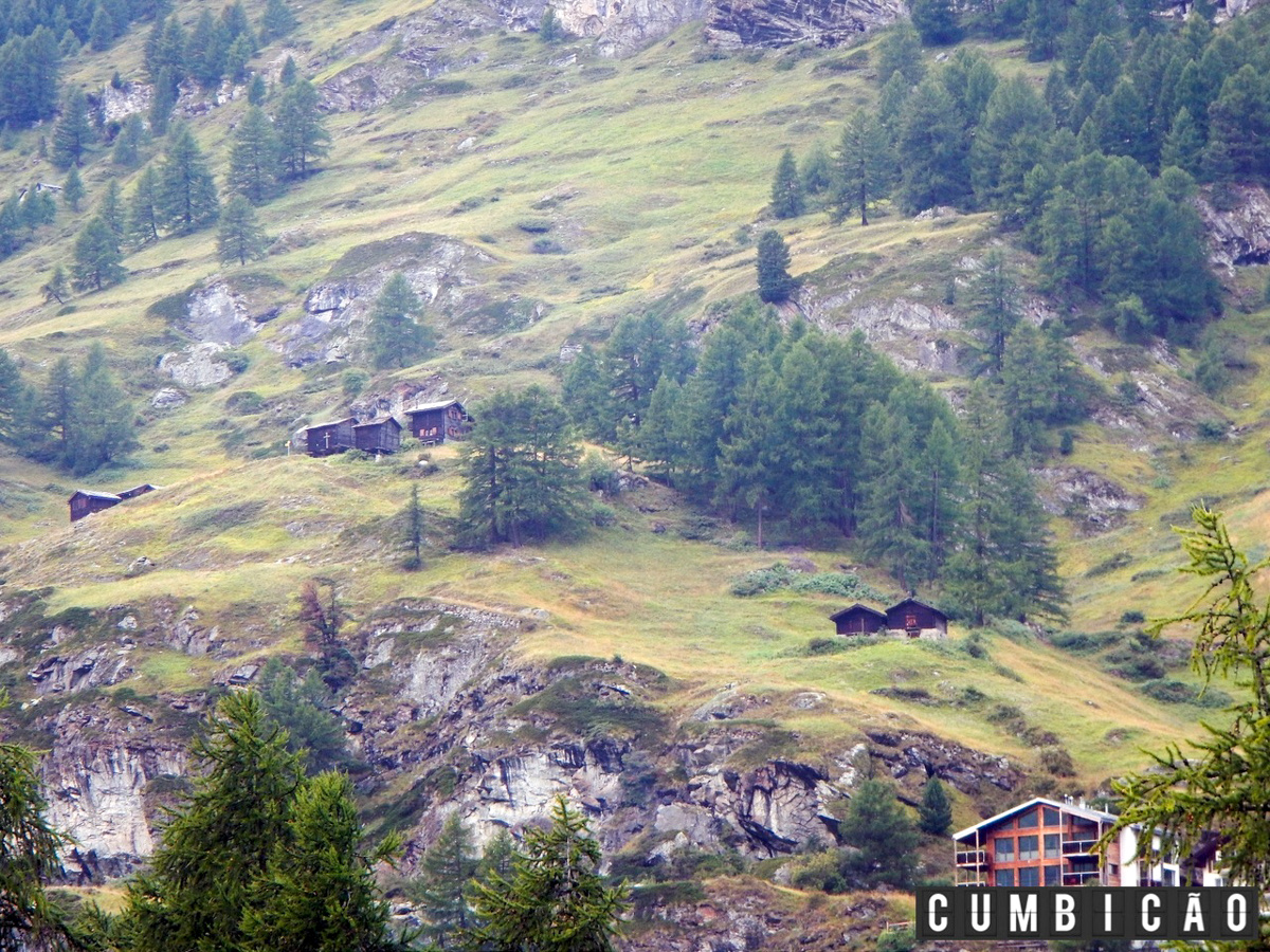 Notem que entre o primeiro andar das construções (normalmente utilizado para armazém ou estábulo) e o segundo, há um grande vão. Ali eles armazenavam a lenha para ser consumida durante o rigoroso inverno dos Alpes.