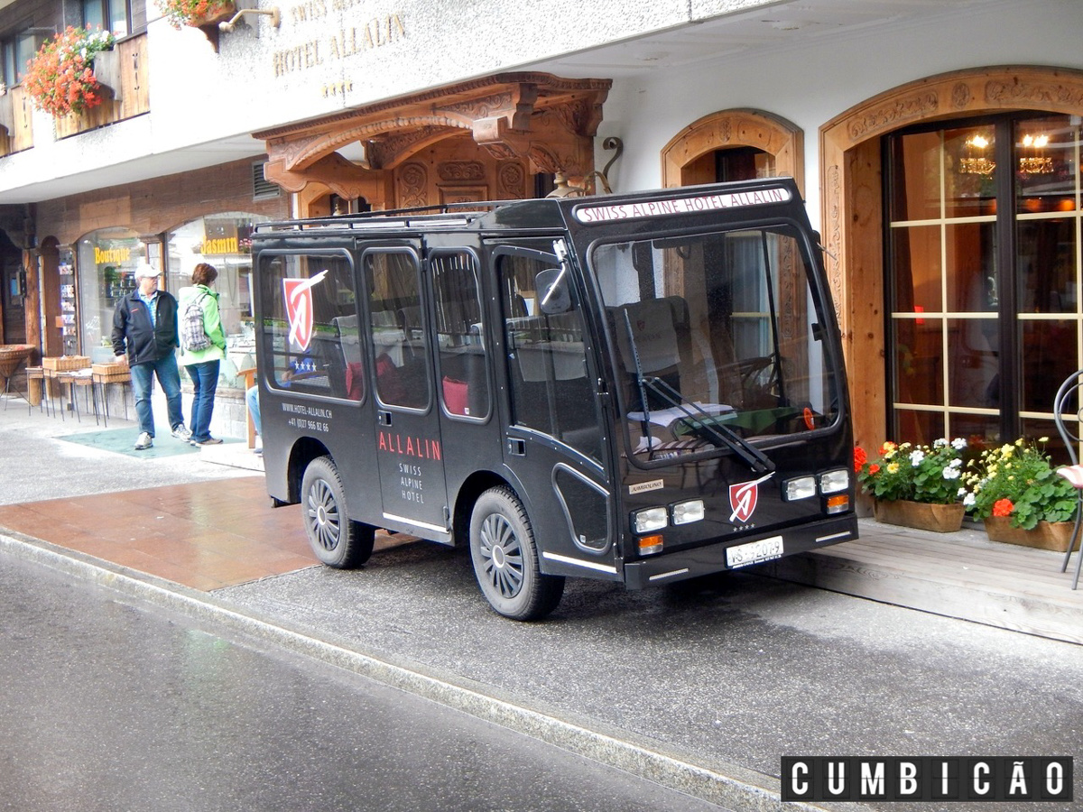 Mas e daí, e quem estiver de carro? Simples, para-se num bolsão situado antes da entrada do vale no qual Zermatt está e de lá segue-se num destes táxis elétricos. Uma alternativa mais em conta é o Zermatt Shuttle (CHF 7,80) que em 12 minutos e com partidas a cada 20 minutos das 6h00 às 21h30 faz o trajeto até a cidade propriamente dita.