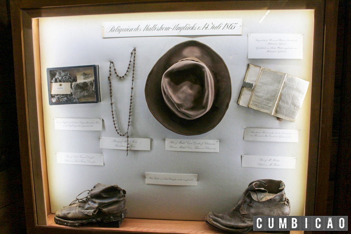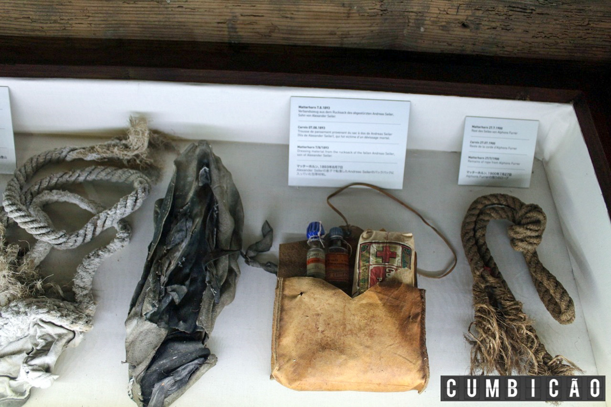 Dentre os principais itens expostos, está a famosa corda que vitimou os 4 membros da equipe de Whymper.