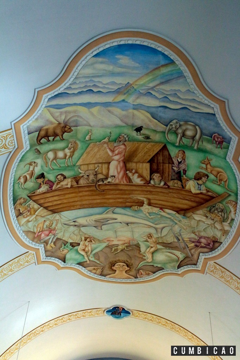 Com um interior despojado, as atenções se voltam para a modernosa pintura no seu teto.