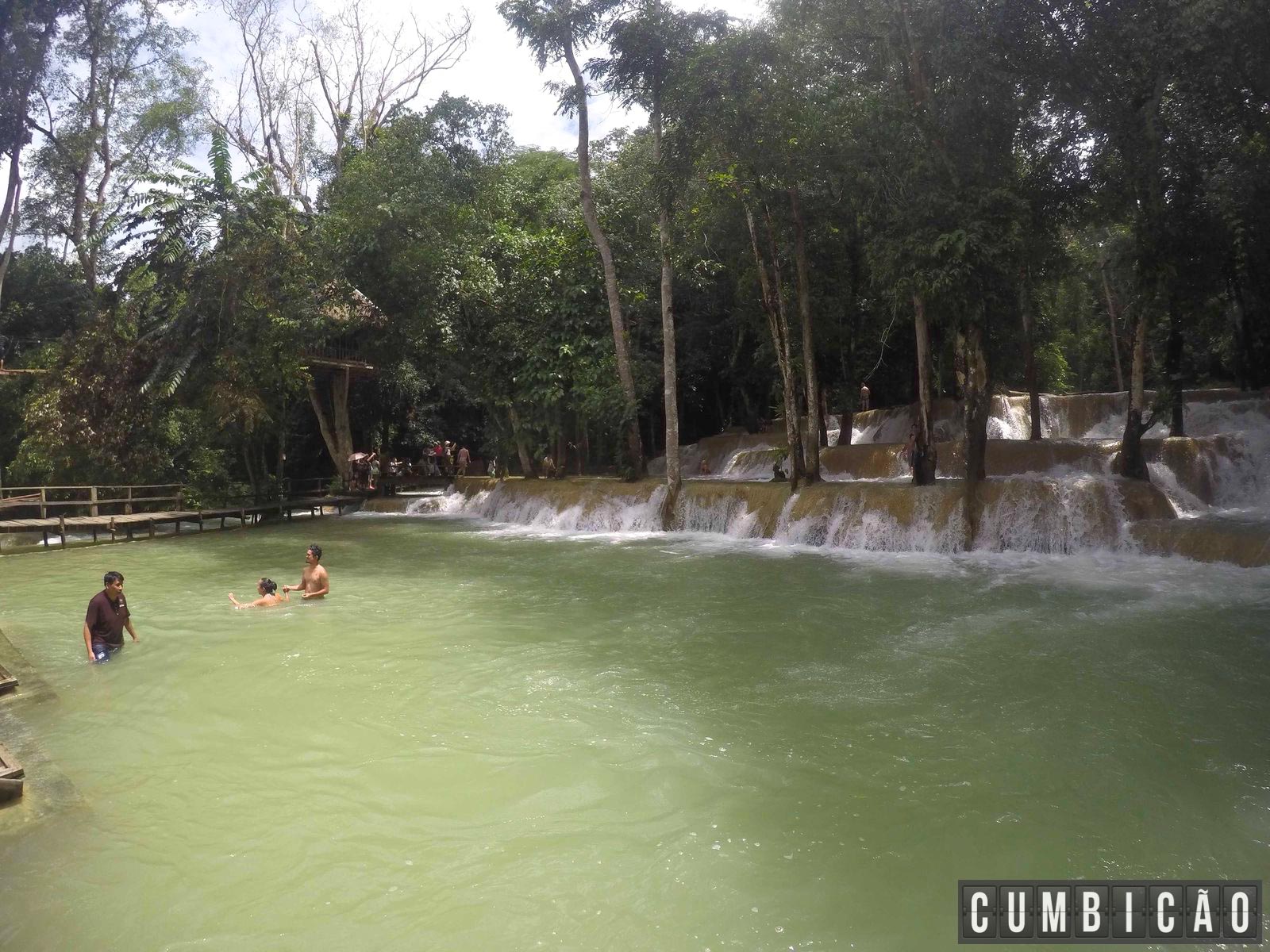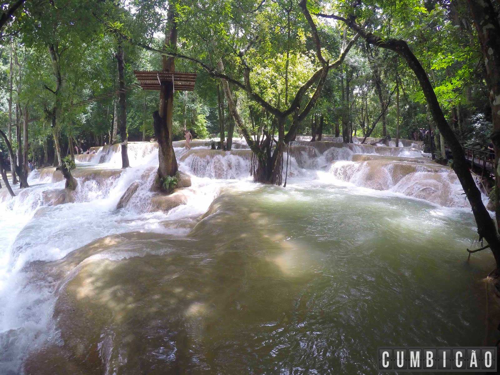 Semelhantemente à Kuang Si, você encontrará várias quedas de água em meio às árvores. Mas aqui, diferentemente da mais famosa cachoeira, não há uma grande queda de água.