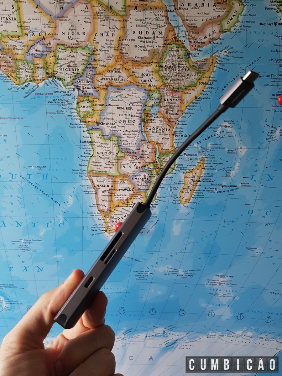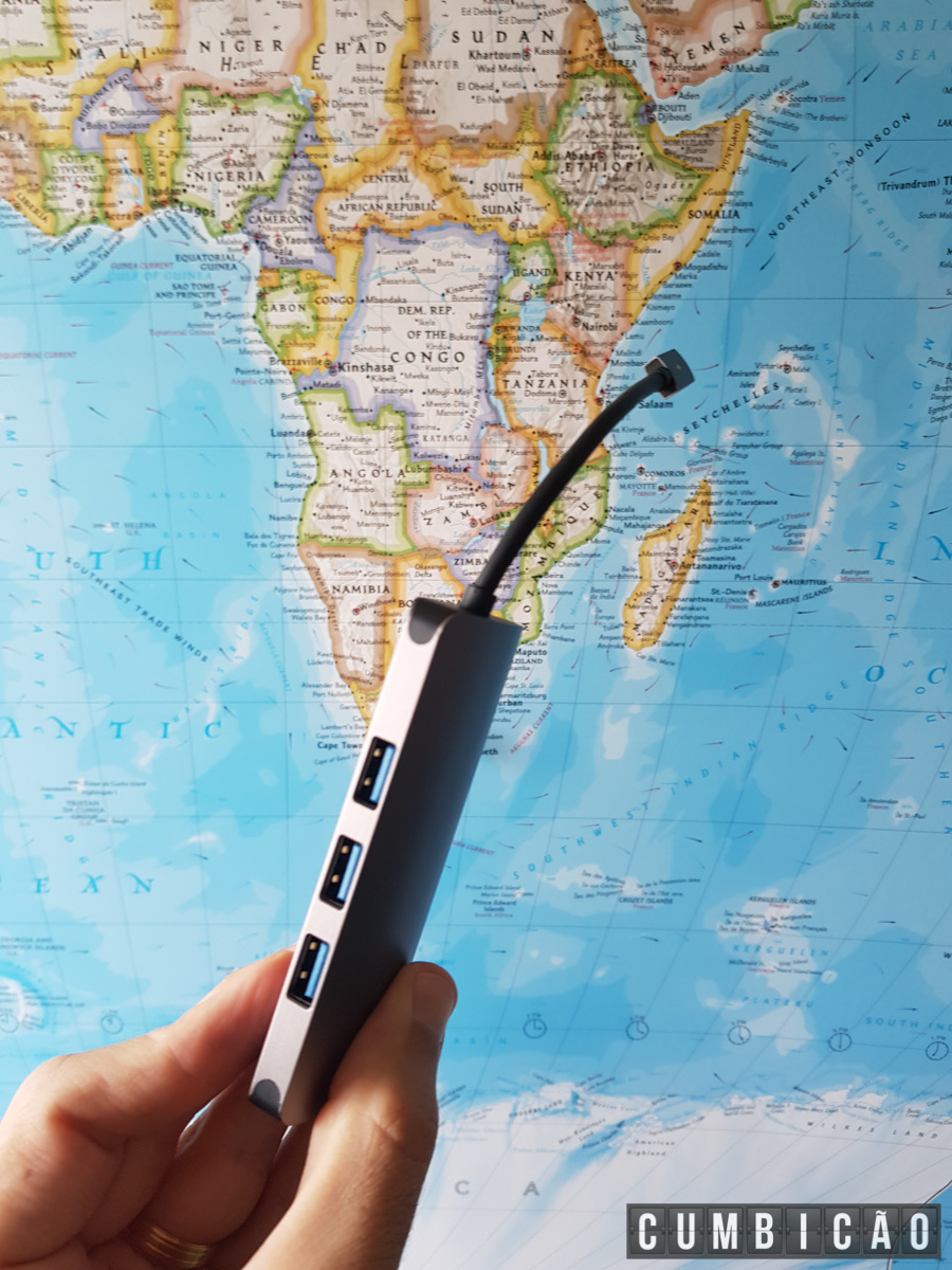 Adicionalmente, prefira um hub com saída HDMI assim você consegue ligar o celular na TV do hotel usando um cabo HDMI (talvez do próprio hotel!) – aqui já deu para notar que o seu celular pode quase virar um computador, né? Some ainda um requisito essencial ao hub: ter leitor de cartão (abaixo explico o motivo).