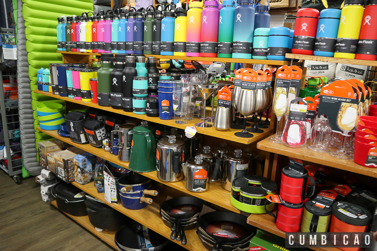 Por ali, muitos restaurantes e algo que chamou demais a minha atenção, já que adoro este tipo de coisa: lojas especializadas em artigos de aventura, como equipamento de camping, mochilas, roupas impermeáveis, e tudo o que você possa imaginar para quem quer curtir a vida ao ar livre. Um paraíso!