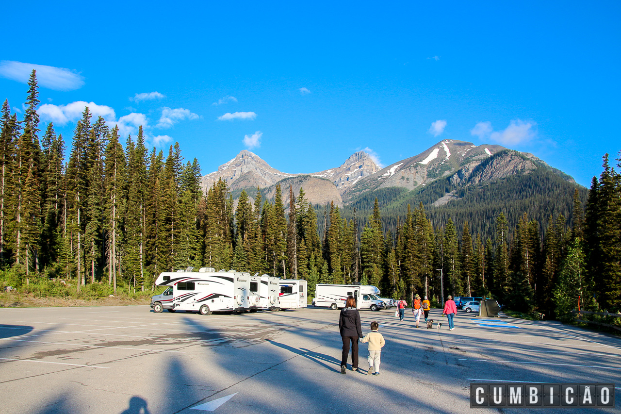 E por falar em pernoitar, salvo se você tiver disposição ($$$) para ficar no Hotel Fairmont, a opção mais fácil é usar um camping oficial do parque e estacionar o seu motor-home. Nós optamos por pernoitar no Lake Louise Campground.