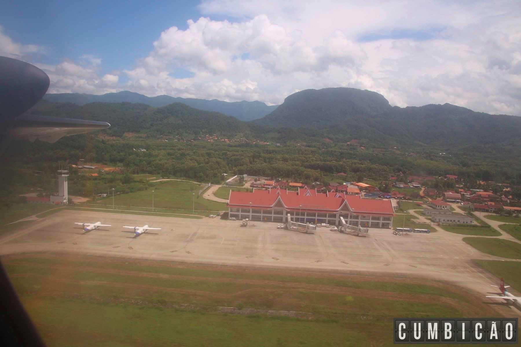 O aeroporto de Luang Prabang fica a apenas 4km da cidade e é bem simples. Só para vocês terem uma ideia, é apenas um terminal que serve tanto para voos domésticos quanto internacionais.