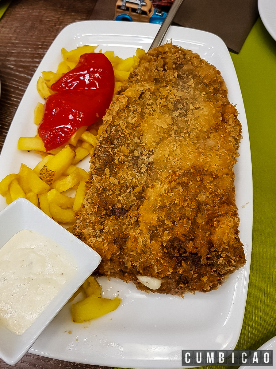 Algo que eu simplesmente amei foi o cachopo tres quesos, uma espécie de bife empanado recheado com queijo. Divino!