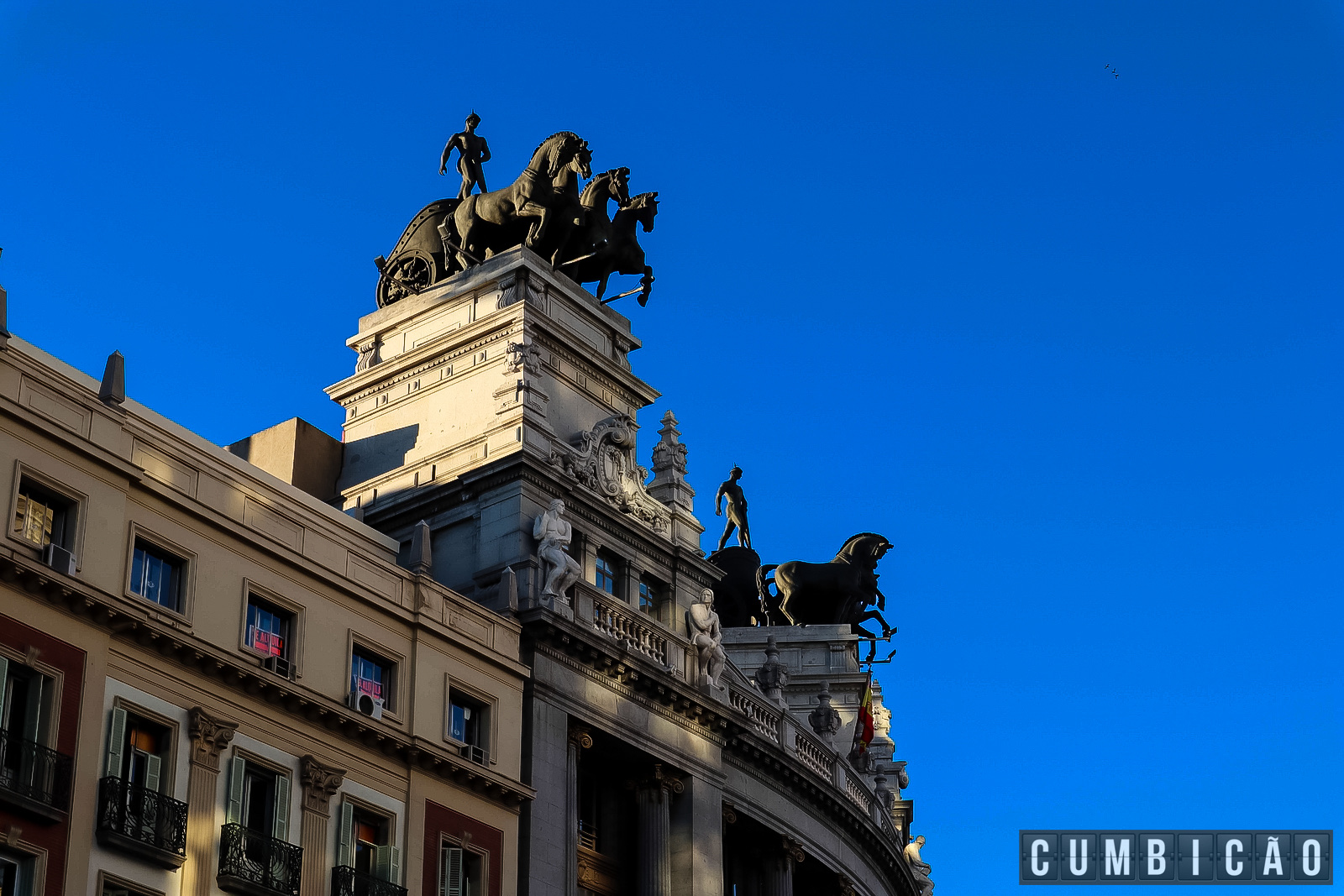 O mais famoso destes fica logo nesta bifurcação com a Calle de Alcalá, o Edifício Metrópolis, que é meio que sinônimo de Madri. Construído em 1906, pertence a uma empresa de seguros.