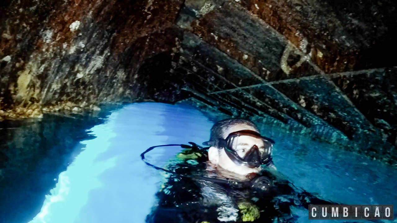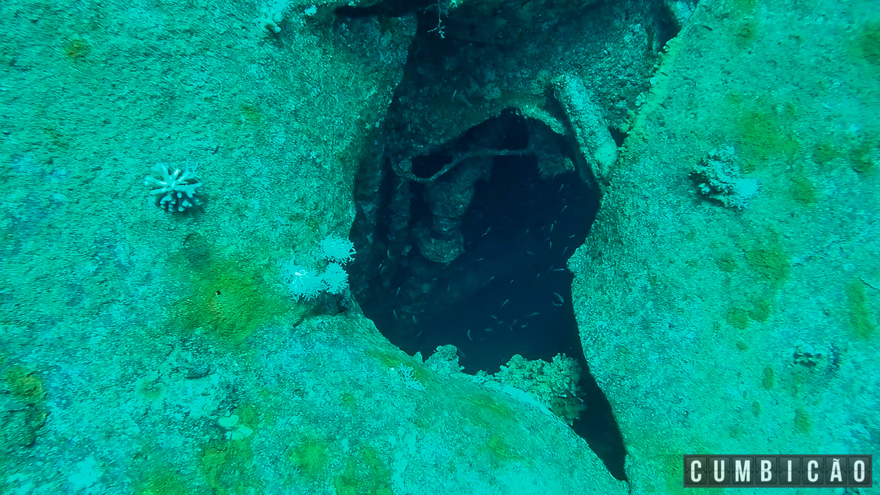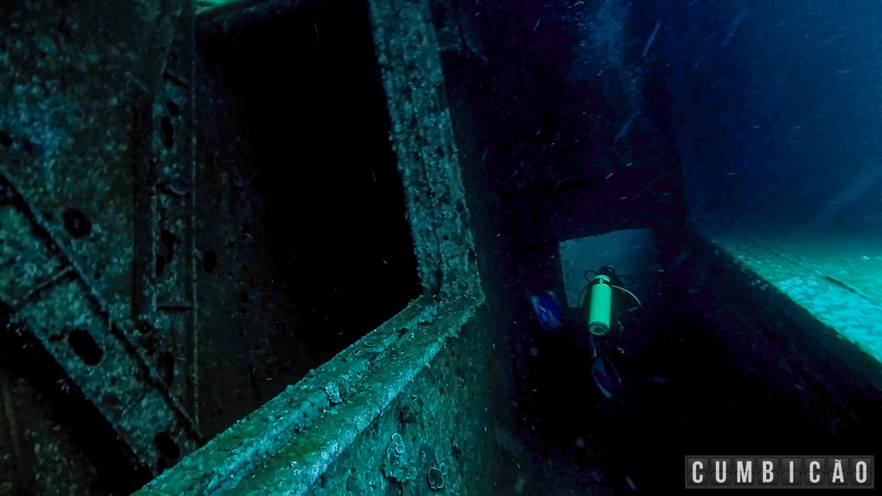 Há uma curiosidade interessante: numa parte do navio, formou-se um bolsão de ar permanente (claro que eventualmente alimentado por nós mergulhadores). Uma das partes interessantes deste naufrágio é justamente entrar nesta bolha.