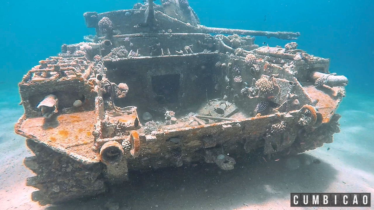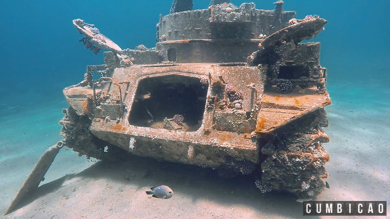 Situado entre 18-28m, eles afundaram nada menos do que 19 itens que vão de mais tanques de guerra, passando por ambulâncias, guindastes, e até dois helicópteros.