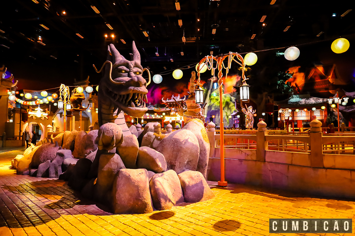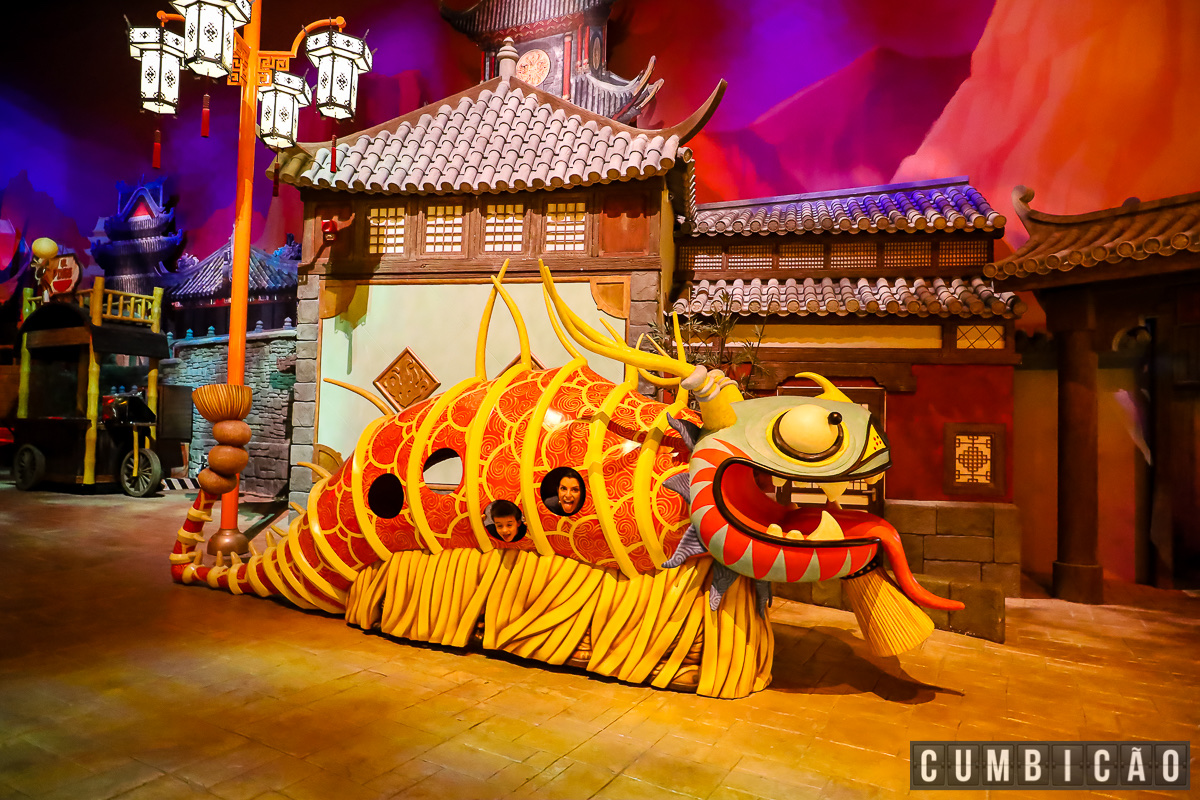 Começando pelo universo do Kung Fu Panda, temos toda uma área muito bem ambientada na China, inclusive com uma iluminação bem avermelhada que atrapalha um pouco as fotos, mas que fica linda ao vivo.