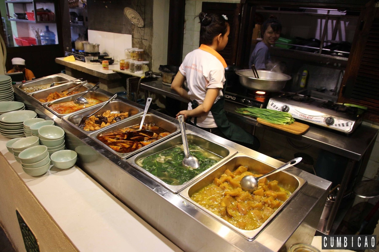 Se me pedissem para definir a comida local, a melhor palavra seria fresca e condimentada, em um bom sentido, é claro. Digo isso porque lá eles usam muitos temperos frescos como hortelã, capim-limão, gengibre, manjericão, coentro, canela, leite de coco, pimenta (bem pouco) e limão. Outros ingredientes bem típicos são peixe, camarão e até lula desidratada. Nos pratos você encontrá poucos molhos: soja, soja fermentada e ostra.