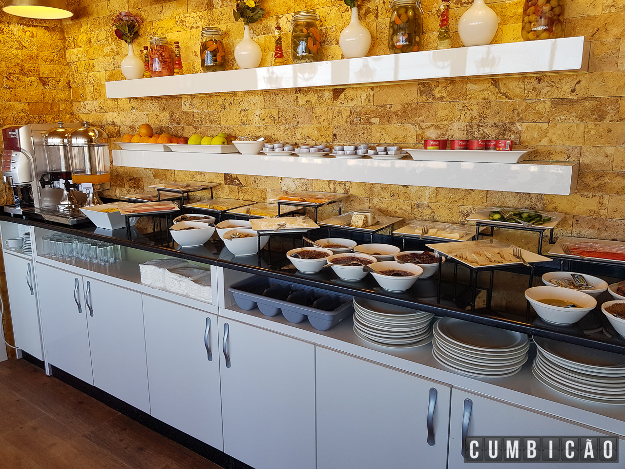 Servido no último andar do hotel, o café da manhã não tem nada de luxo (se comparado, por exemplo com o Kempinski do Mar Morto, por exemplo), mas não faltou nada!