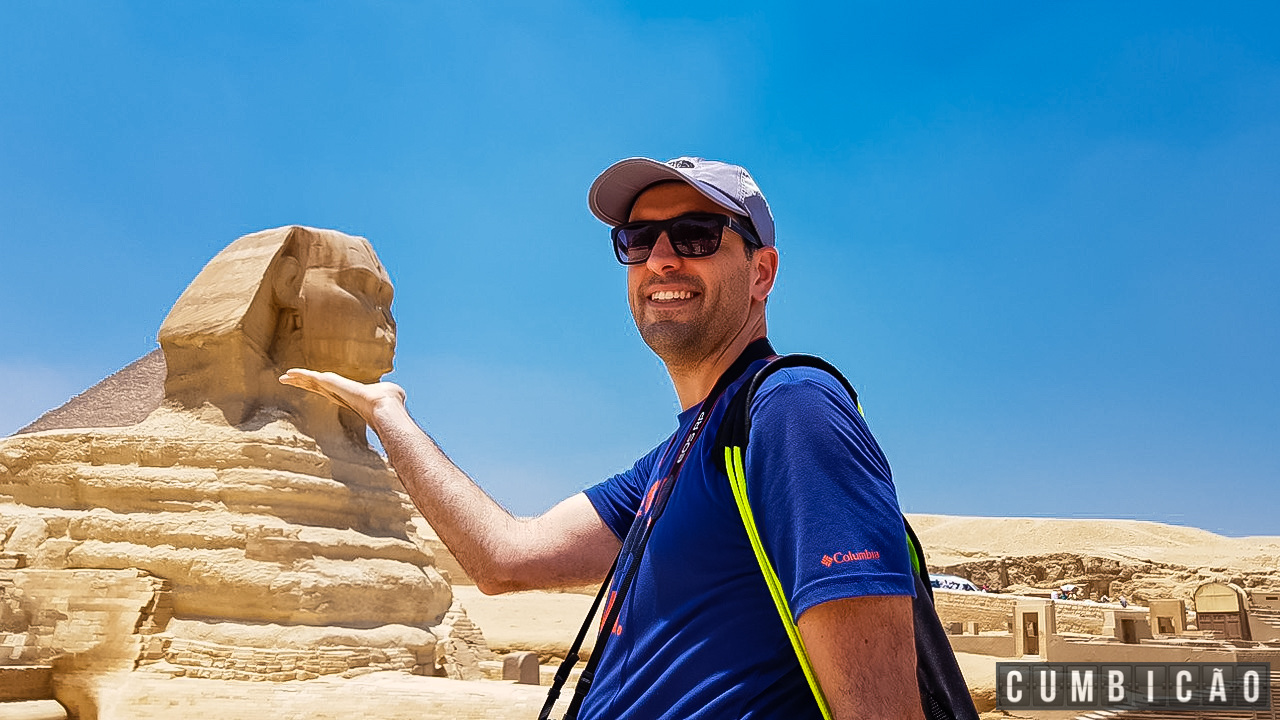 Aqui confesso para vocês, se de um lado eu fiquei impressionado com o tamanho das pirâmides que na verdade são maiores do que você pensa antes de chegar lá, eu fiquei com a impressão oposta sobre a esfinge. Ela parecia menor do que eu imaginava. 🤣