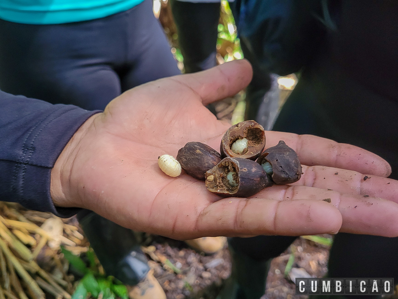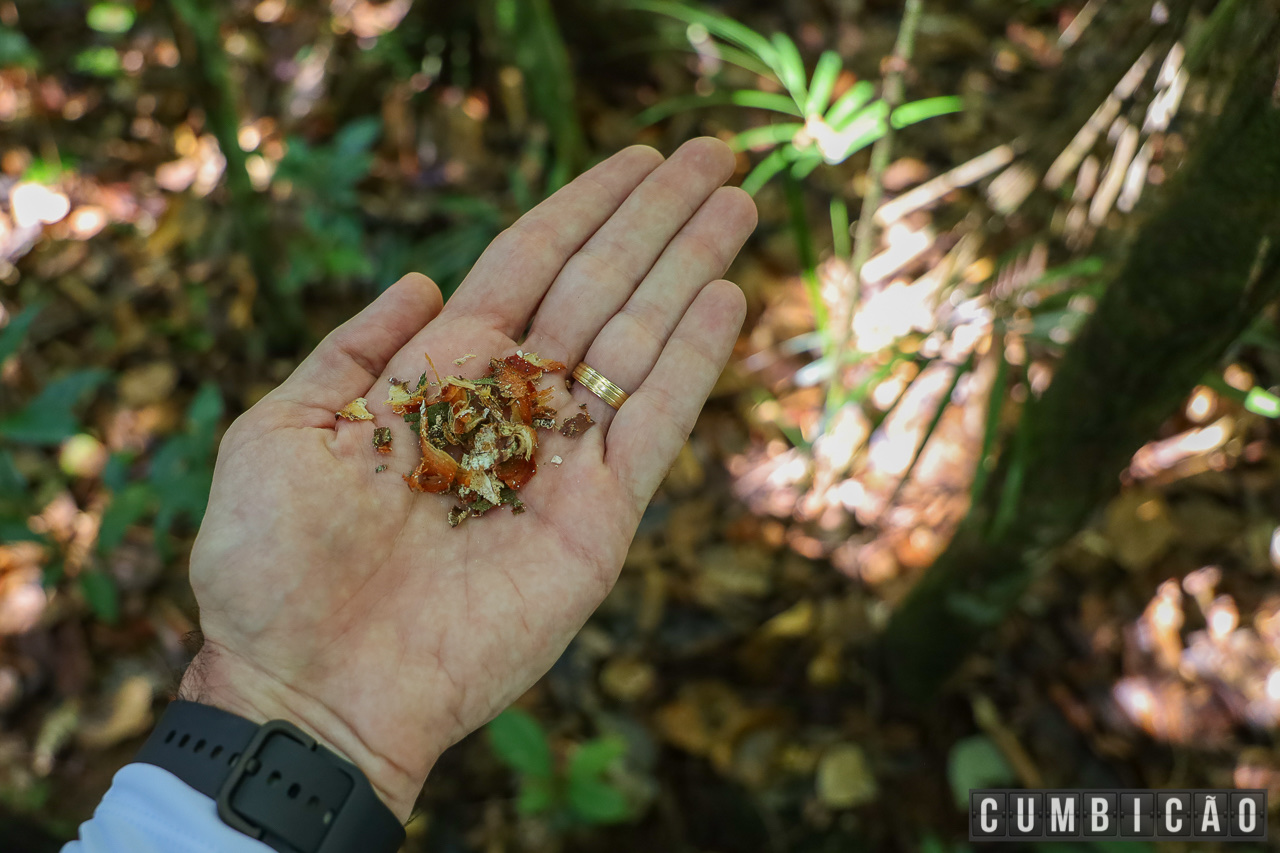 Outro item que eles servem e que fiz questão de provar, até porque eu já havia me esquivado da larva do coquinho quando fizemos as trilhas de selva, foram as formigas.
