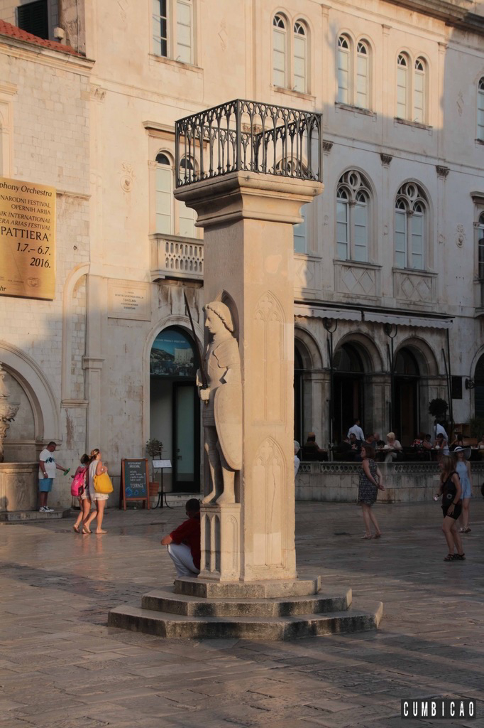 No centro da praça, está a Coluna de Orlando. O interessante é que na base da coluna há uma estátua, o Orlando. A extensão do seu braço direito (51,2cm) era usada como medida padrão de comprimento na antiga Croácia. Ali também eram realizadas as punições públicas aos infratores da lei.