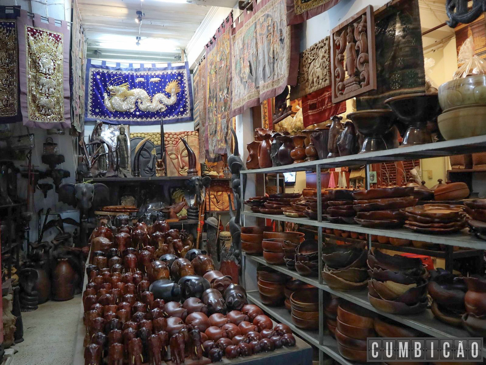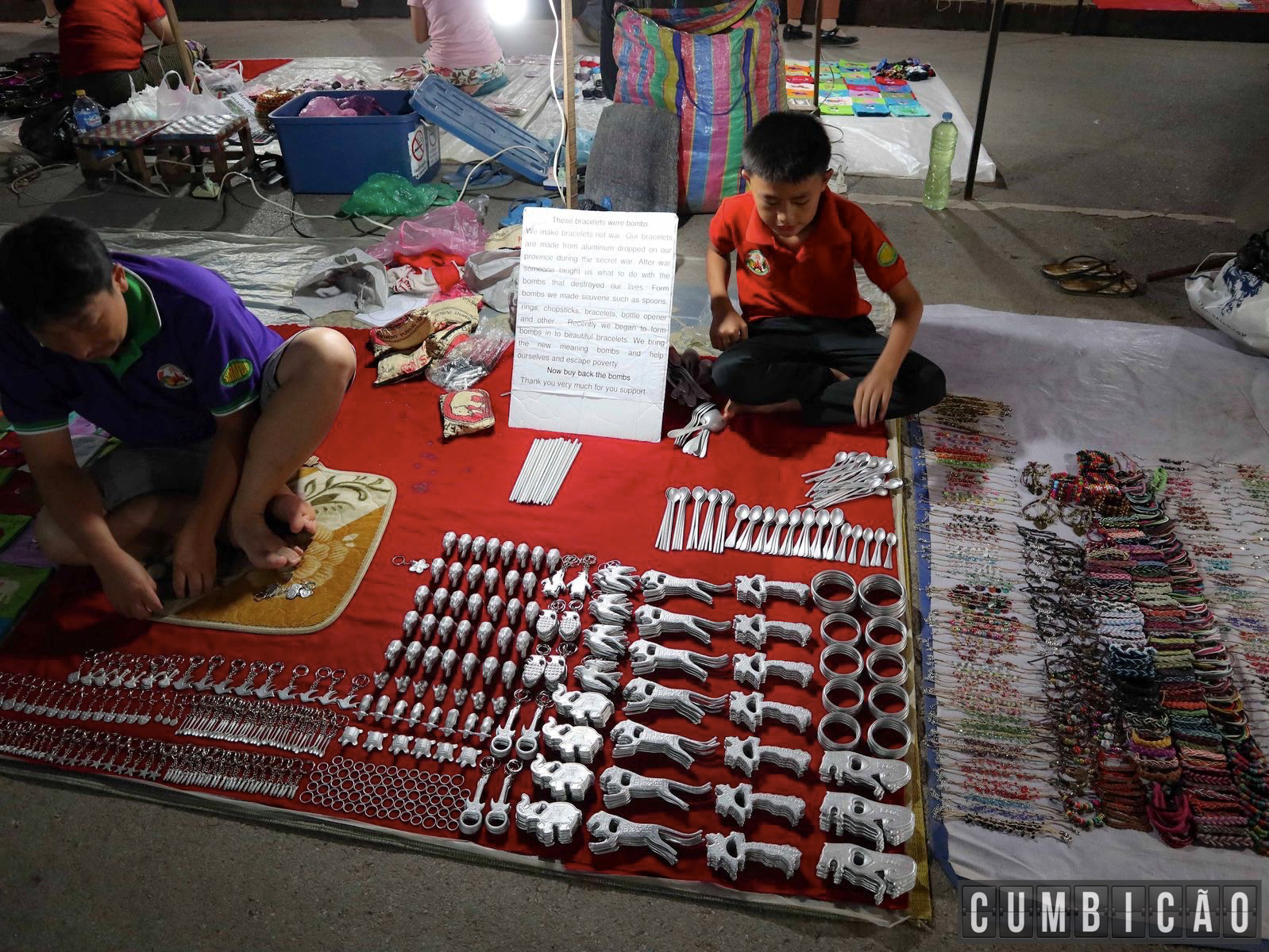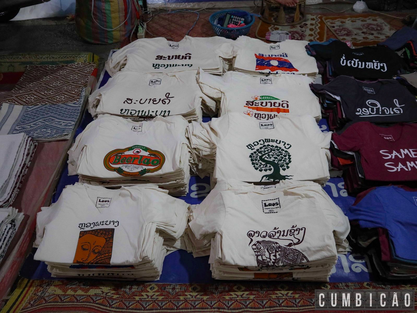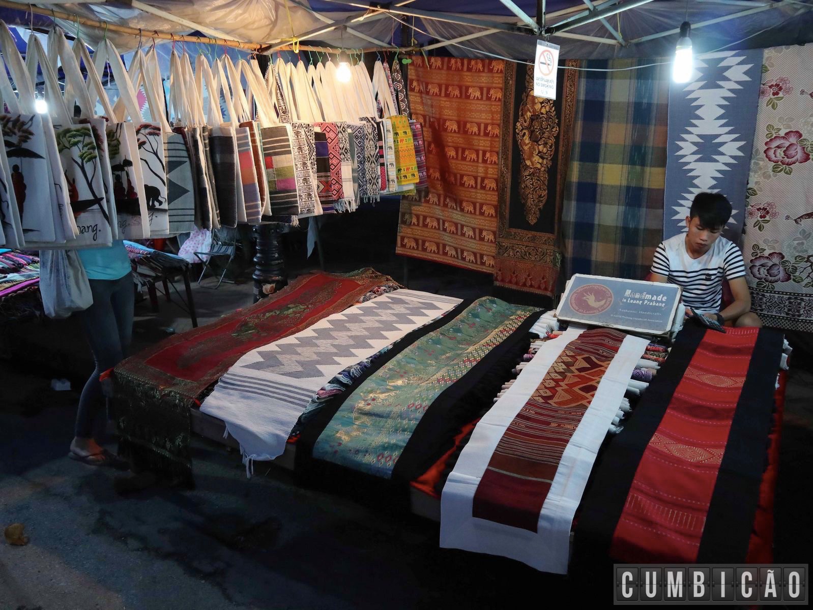 Mas se você está ainda com aquela imagem de street market que mostramos em Hong-Kong, esqueça. Aqui praticamente inexistem bugigangas made in China, pois o grande diferencial é a quantidade de itens locais e artesanato de qualidade: cerâmica, produtos têxteis, pinturas e etc. Tem até artesanato feito a partir de itens antigos de guerra. Logo, é algo genuíno no melhor estilo Luang Prabang.