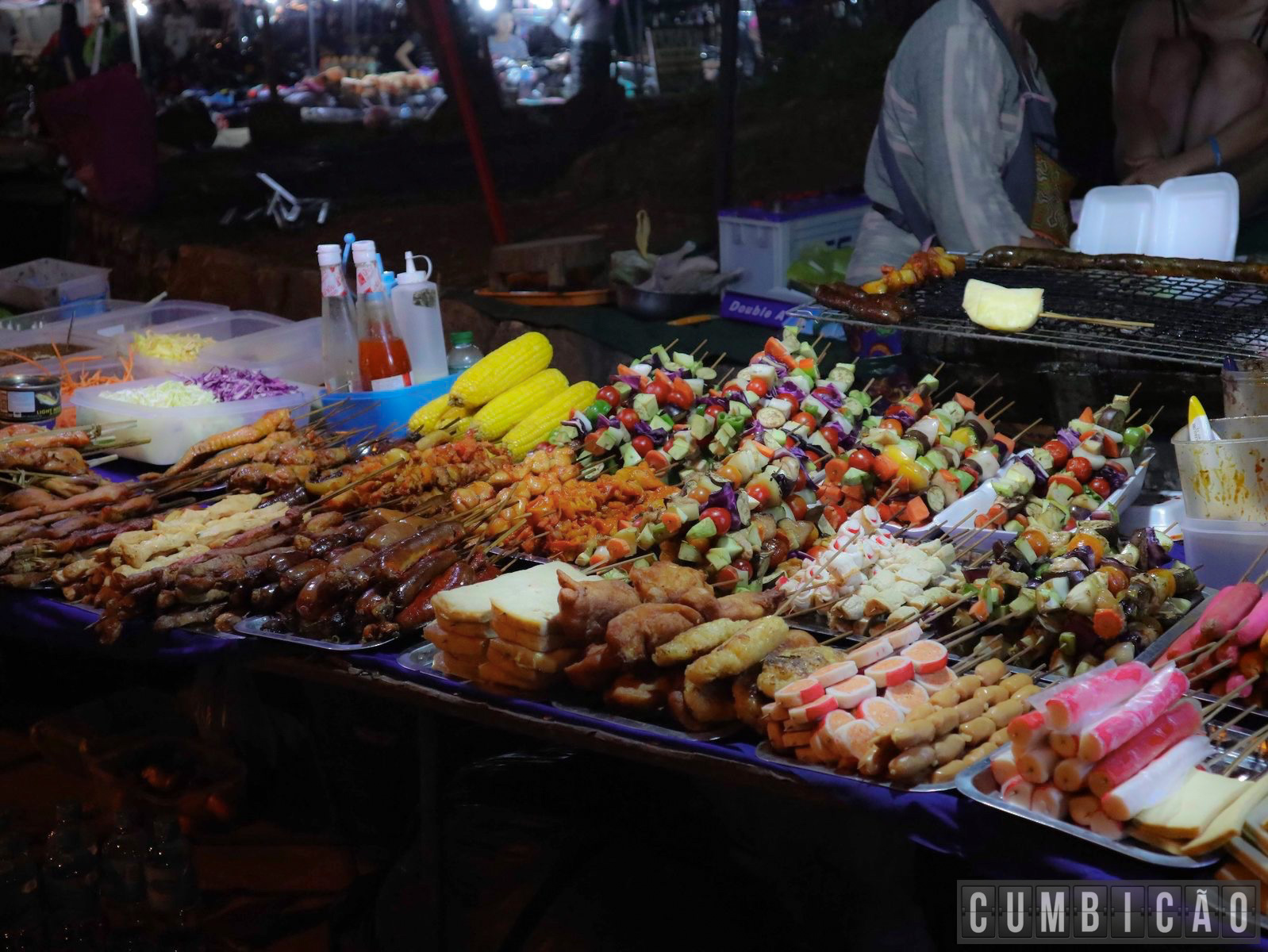 Claro que dentre tantas barracas, tem sempre aquelas interessantíssimas com comida local (e umas esquisitices é verdade) e bebida. Duas verdades sobre as barracas de comida: a primeira é que tem sim muita comida boa e barata – pode parecer difícil, mas supere o medo. A segunda é que as esquisitices vão bem além de grilos e larvas, vi relatos (e fotos) de bancas que vendem até morcegos para comer (santo Batman!!!) – mas não achei.