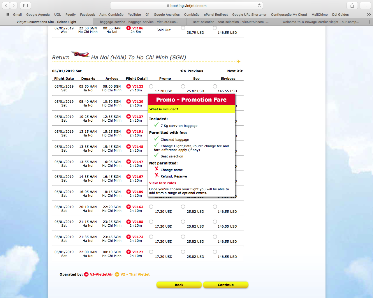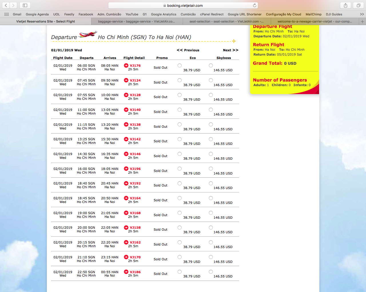 Apenas para que vocês tenham uma ideia dos valores e frequências, simulei uma viagem ida e volta de Ho Chi Minh para Hanói, dois destinos super tradicionais no Vietnã.