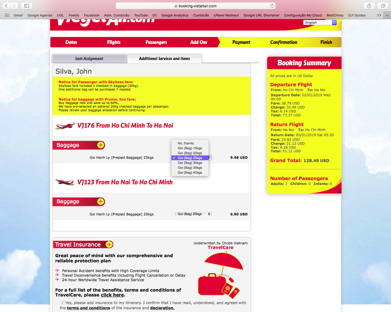 Mesmo sendo uma empresa bem fora do dia-a-dia da maioria das pessoas, sugiro que você faça a compra diretamente no site da Vietjet Air, já que o site está todo em inglês. Se ele não entrar automaticamente em inglês, é só trocar isso no campo superior direito. Ok?
