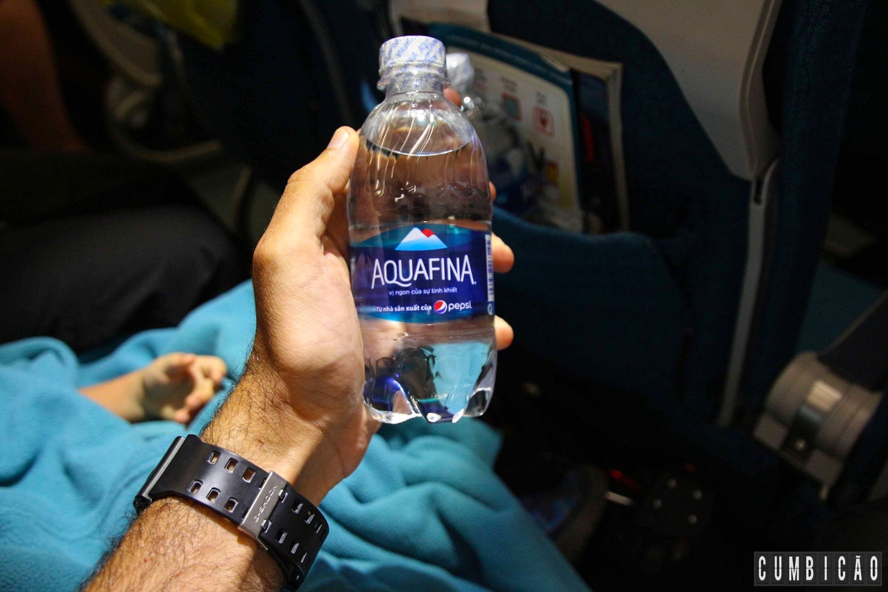 Nas poltronas, eles disponibilizam cobertor e durante o voo distribuíram garrafas de água mineral. Nada de refeições, o que também é razoável para um voo com apenas 1 hora.