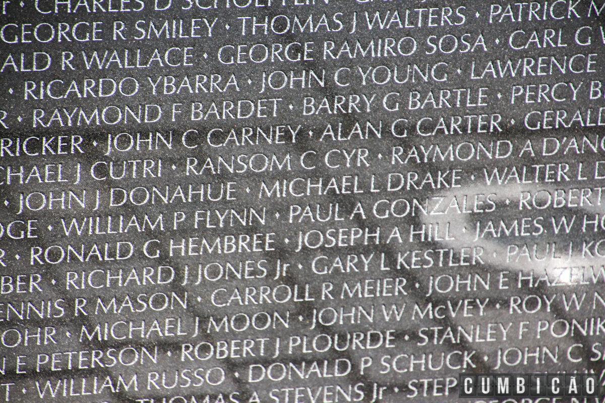 Nas paredes de granito preto estão os nomes das vítimas e quase sempre há flores ou cartas que demonstram a dor daqueles que sofreram e sofrem com atrocidades como foi tal (e qualquer) outra guerra.