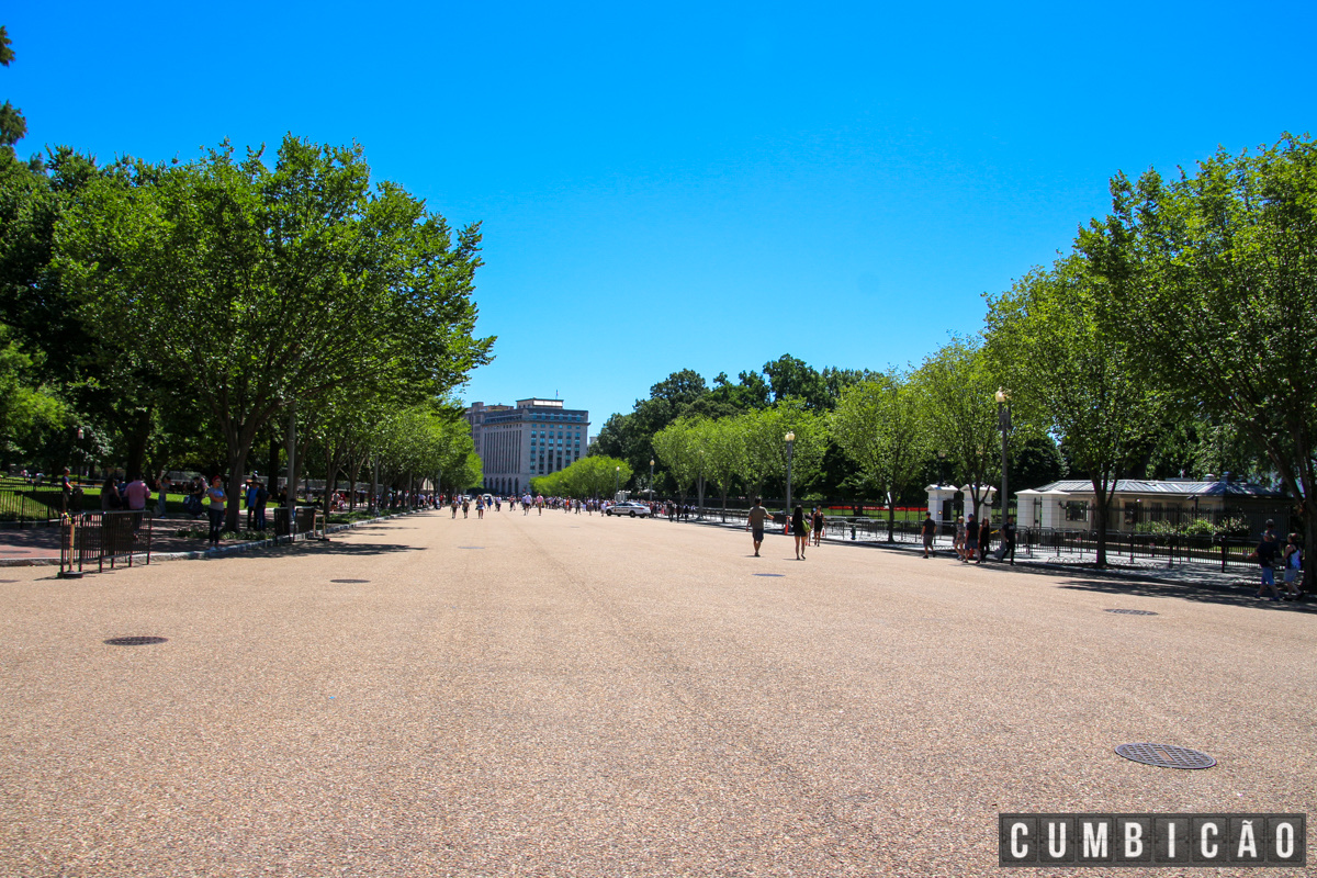 Seguindo pelo National Mall, a próxima parada é a Casa Branca, talvez a sede de governo mais famosa do mundo. O incrível é que ao invés de parecer um palácio, como é o caso de muitos países, ela de fato parece com uma casa.
